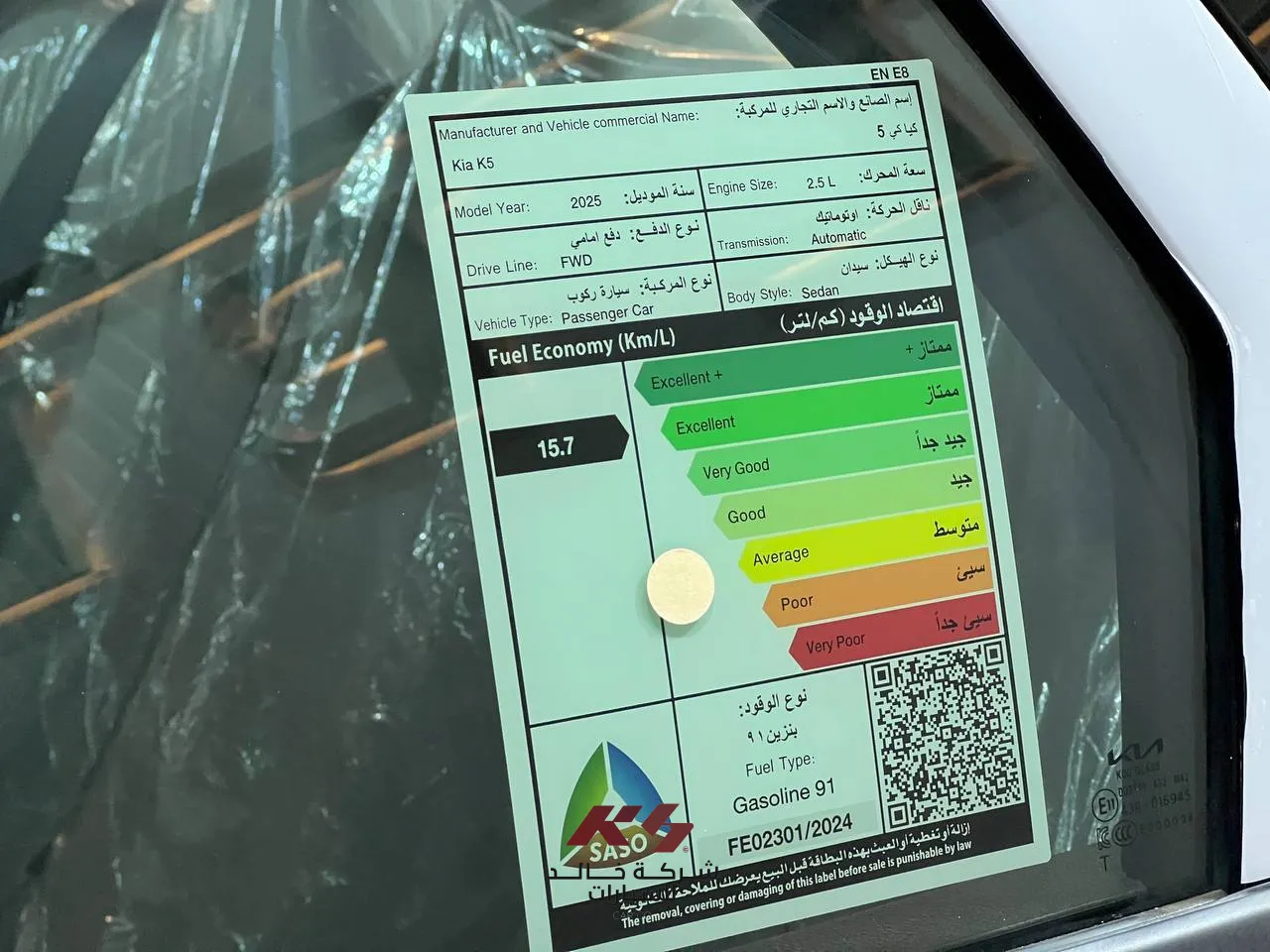 15.7 كم/لتر (تقييم "ممتاز")