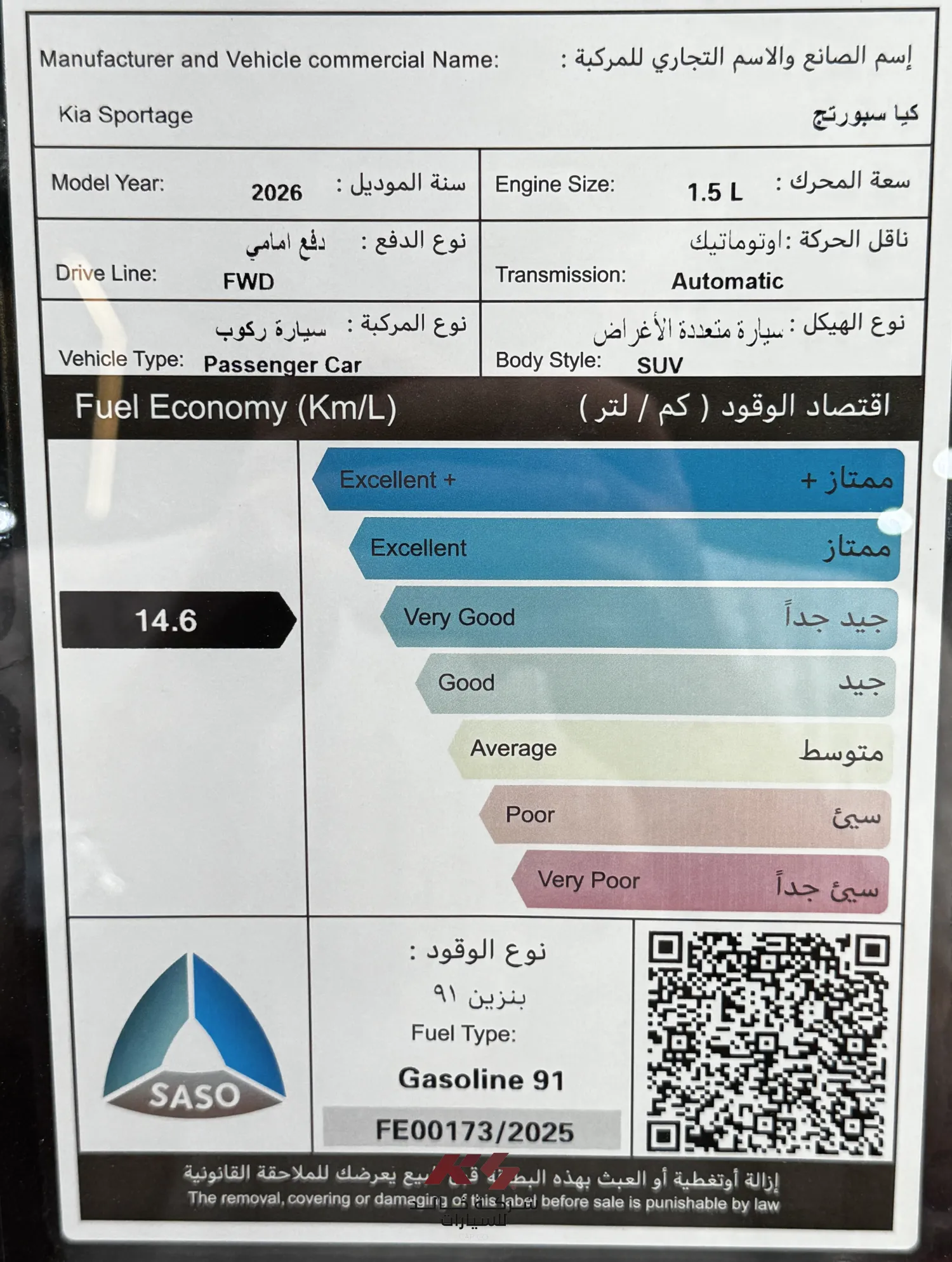 كيا سبورتاج (2*4) GL 1.6CC ستاندر 2026