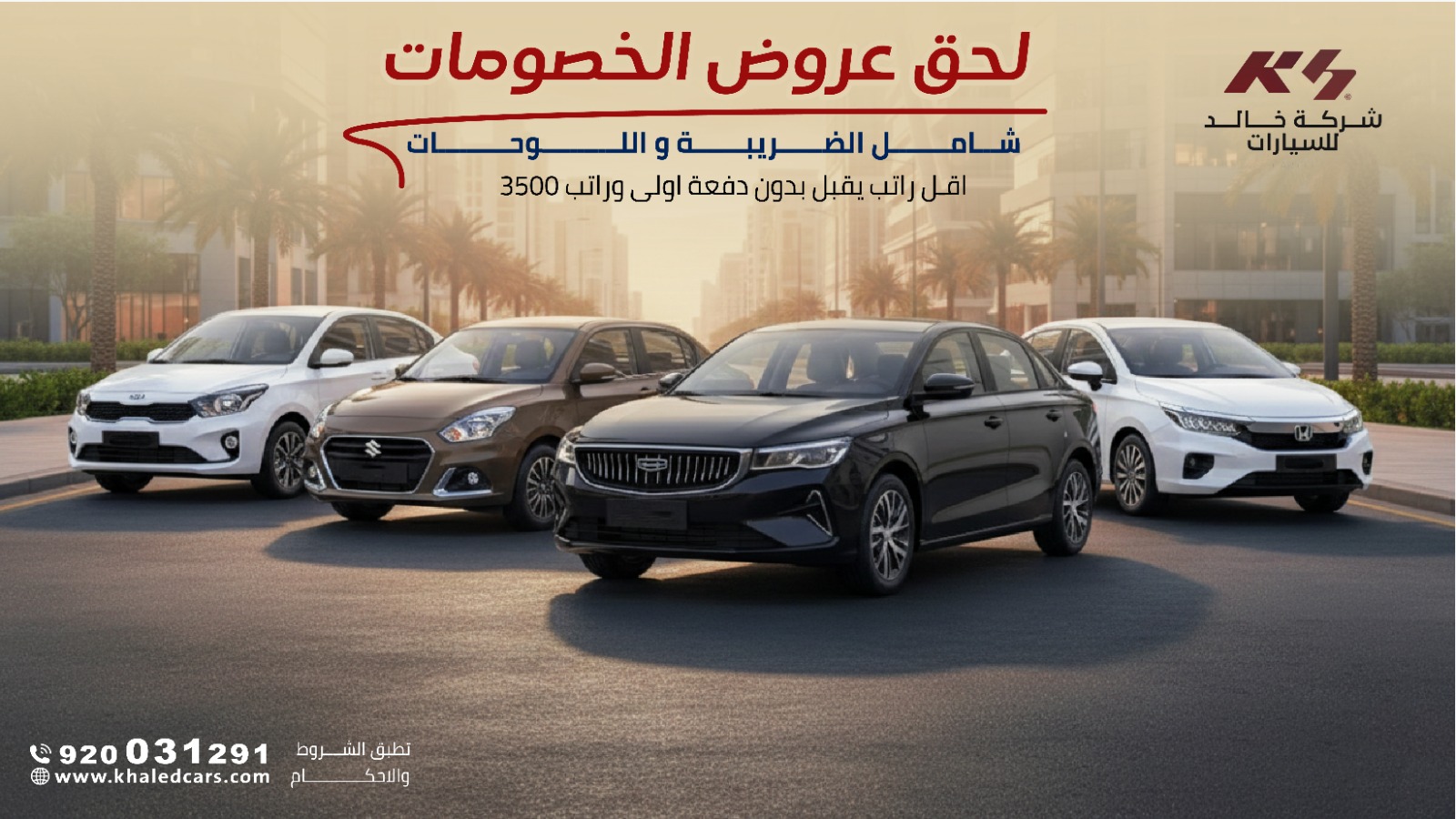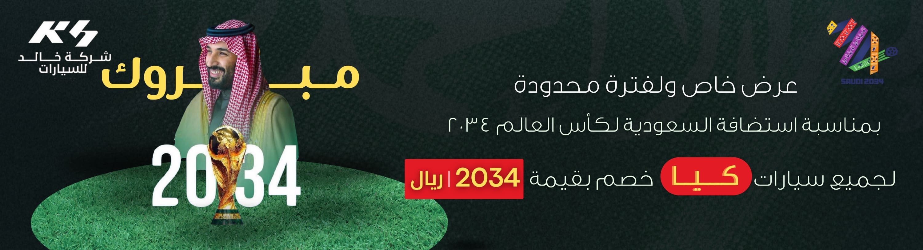 أخيراً وبعد انتظار طويل، السعودية راح تستضيف أكبر حدث رياضي في العالم، كأس العالم 2034! الخبر هذا مو بس فرحة لكل عشاق الكرة، لكن كمان فرصة نشارككم فيها بعرض رهيب ما يتفوت من معرض خالد للسيارات. بمناسبة هذا الحدث التاريخي، جايبين لكم خصم خاص بقيمة 2034 ريال سعودي على سيارات كيا وهوندا.