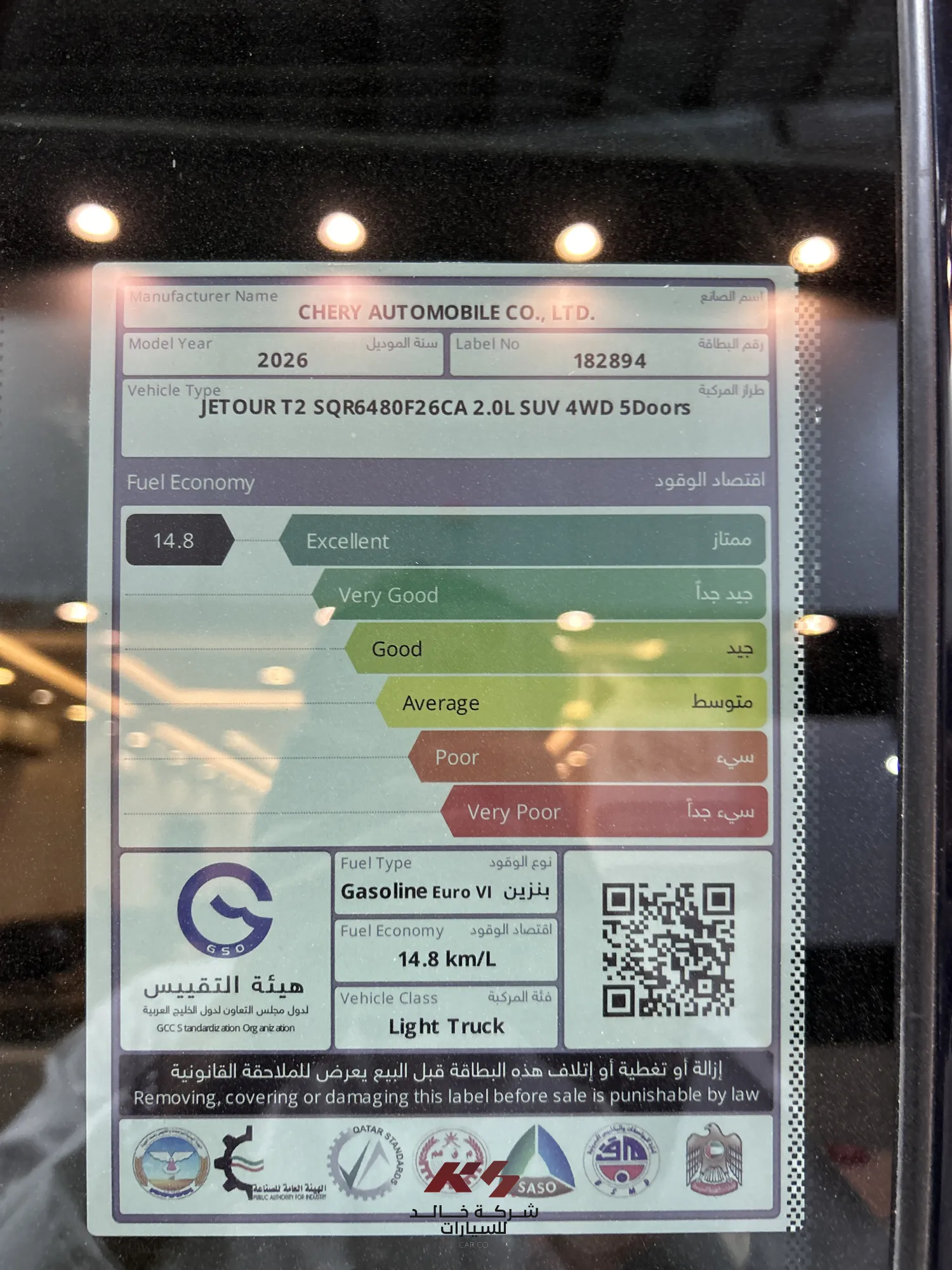 حوالي 14.8 كم/لتر
